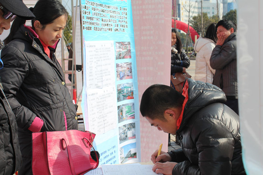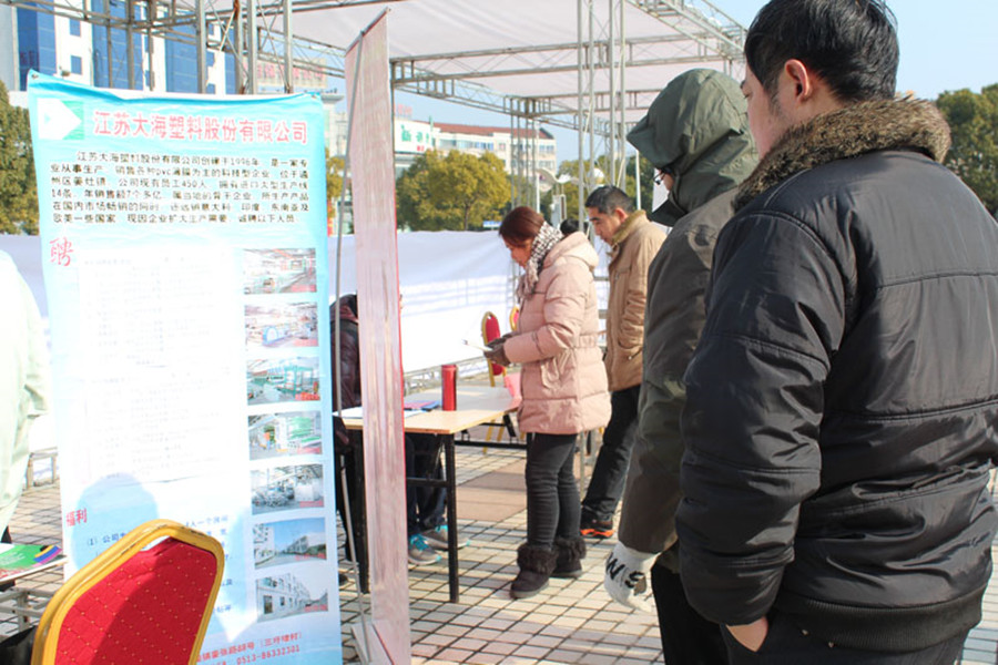 從2月8日起,公司除了在大門(mén)外張貼招聘人才廣告外,還陸續(xù)派出招工小組,分赴南通高新區(qū)、南通家紡城、南通人才市場(chǎng)招工。